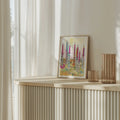 Postern är tryckt med en vit marginal runt bilden för att snyggt rama in designen.