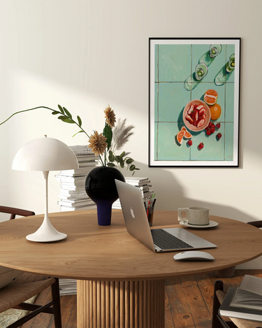 Postern är tryckt med en vit marginal runt bilden för att snyggt rama in designen.