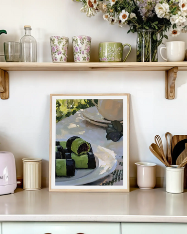 Vår Fika kollektion är inspirerad av svensk fikakultur – tidlösa motiv med kaffekoppar, bakverk och varma toner.