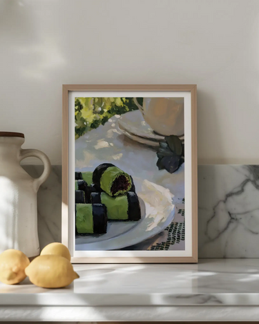 Postern är tryckt med en vit marginal runt bilden för att snyggt rama in designen.